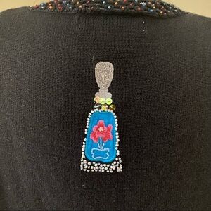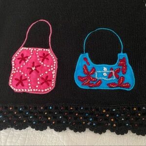 Vintage novelty sweater crochet embroidery perfume bottles purses bags handbags beads sequins