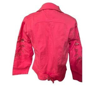 Great Cavalier by St Paul Women's Pink Button-Front Jacket L Cutwork Sleeves