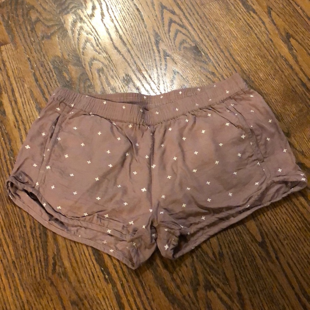Adorable and flattering RVCA shorts in a dusty pink color with cream or white pattern. True to size medium.
