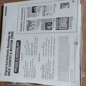 Deluxe 2 record set featuring Hank Williams and more. Vibrant yellow and pink cover.