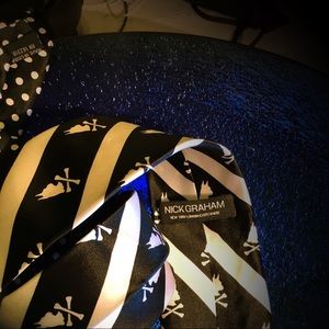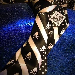 Black and white diagonal stripe with heckin dogs-n-crossbones shadow patterned skinny tie . Like new condition, 100% silk . Holy phuque!