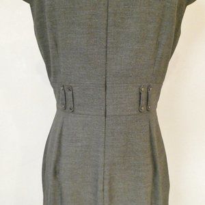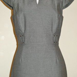 Arthur S. Levine Dress, As New, sz 6. Round Split Neck, Short Sleeve, Fitted, Hidden Zipper, Belt Carriers, Fully Lined. Wear with a Black, Red, Silver, Blue, Gray, Fuchsia, or Red belt. Very Flattering Style. Measurements: pit to pit 19", waist 15" across, hips 18" across, shoulders 15 1/4", back length to waist 14 3/4", waist to hem 23 1/4".