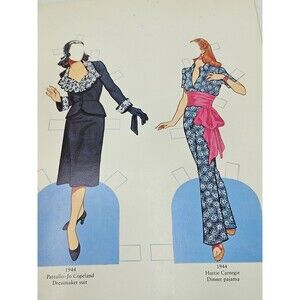 This vintage paper doll set features "Great Fashion Designs of the Forties" by Tom Tierney, showcasing outfits from the 1940s. The paper dolls are uncut and in new condition, making them a unique collectible for fans of vintage fashion. The set includes original designs from the United States, offering a glimpse into the style of that era. The paper dolls are not personalized or handmade, but they are a nostalgic and authentic piece of fashion history for collectors and enthusiasts alike.