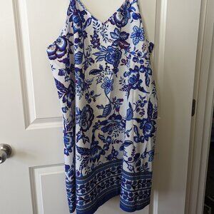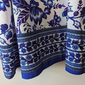 Silky smooth adorable sundress. Very feminine on. Floral design in blue purple and bottom border. Adjustable straps. Depending on your height, falls somewhere between mid thigh and knee. Like new.