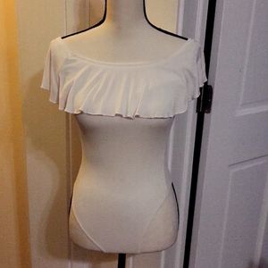 Great Gently Preworn White Express Bodysuit with Ruffled Top Snap Crotch XS