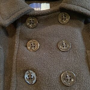 If only this came in adult sizes!! Sooooo cute and warm for the fall on the playground. Double breasted pea coat with velcro closure on the inside. Faux pockets on the sides. Love love love!!