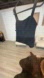 Black crepe (100% Polyester). Top. Sleeveless. Square neckline. 23" from shoulder to hemline. Imported.