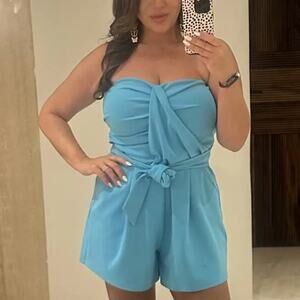 Great Jones Blue Strapless Romper LARGE Turquoise Vacation Resort Designer $260