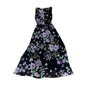 Great Jones Navy Floral Neck Tie Dress Midi Sleeveless Floral Size XS