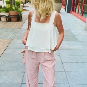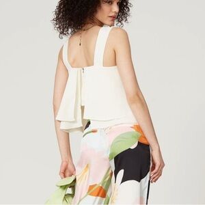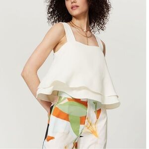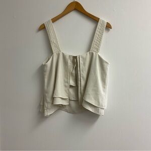 Off-white cream gabardine (100% Polyester). Top. Sleeveless. Square neckline. Exposed zipper closure. Fully lines. 14" from shoulder to hemline