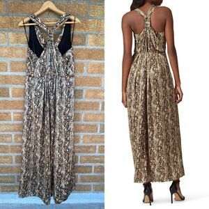 Natural combo woven (100% polyester). Maxi. Sleeveless. Scoop cowl neckline. Back zipper. 58" from shoulder to hemline, Imported