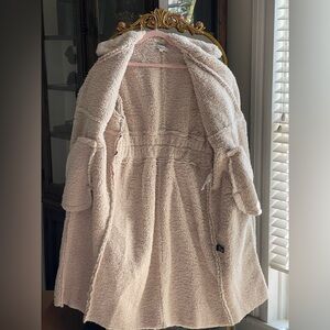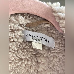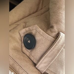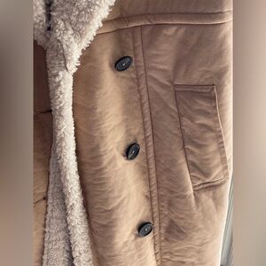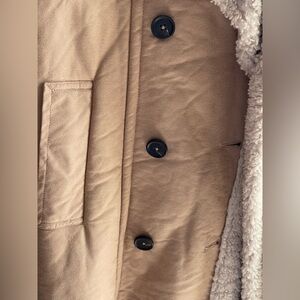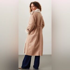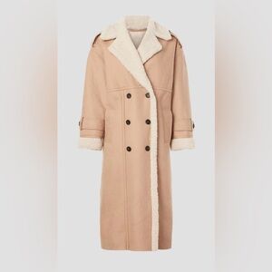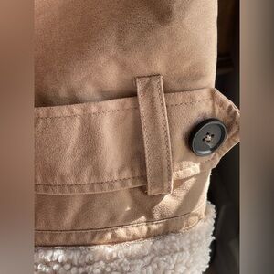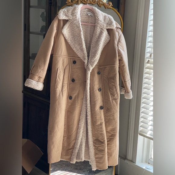 Great Jones Sherpa Lined Women's Tan Double-Breasted Faux Leather Coat