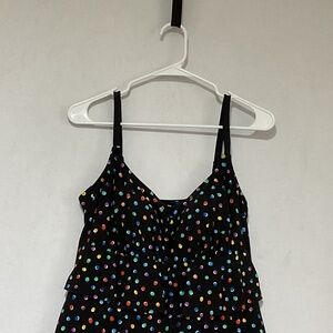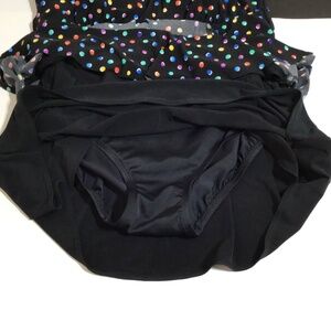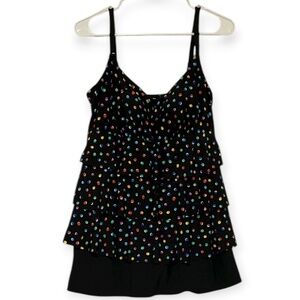 Great Lengths Swimdress Swimwear Womens 10 Black Polka Dot Tiered Bra Cups