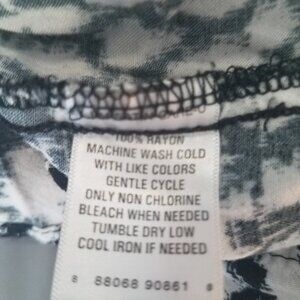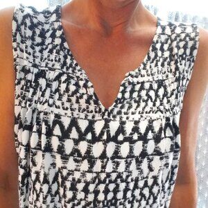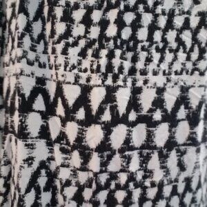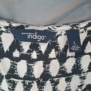 Great Northwest Indigo B&W blouse with abstract print, size L. Cute, lightweight blouse has ties at back to adjust waist size. In like new, barely worn condition.