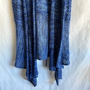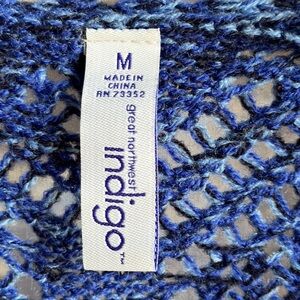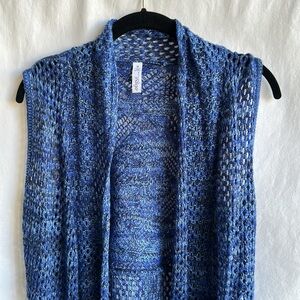 Great Northwest Indigo blue waterfall sweater vest, size M. Good preowned condition. Open weave. Back tie.