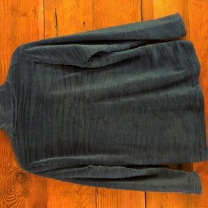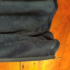 This has a metal zipper closure and pockets for ultimate utilitarian use. It is super soft outside and inside. It is perfect for skiing snowboarding, or other snow activities as a thermal layer. It would also be perfect for keeping warm while lounging.