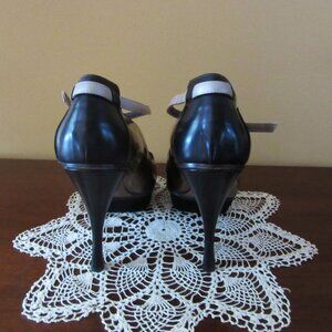 Great Pair of Marni High Heel Black & Gold Mary Jane Leather Heels SZ 39 or 8 US