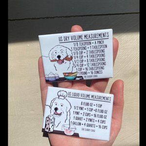 This handmade magnet set features hand illustrated dogs with handy conversion charts you can reference while cooking or baking!