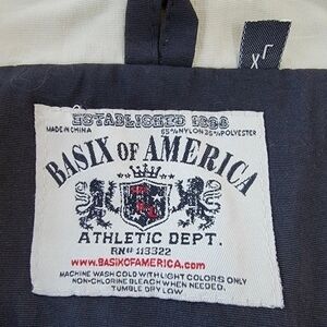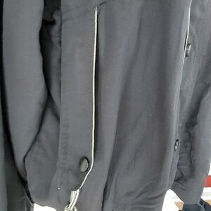 Embroidered logo of "Great Smokey Mountain National Park" on a weatherproof black/tan mens jacket. Full zip and snap front closure. 3 outside and 1 inside zipper pockets. Measures 27" underarm seam to seam. 28.5" from collar to hem. Double elastic sleeve measures 25.5" from shoulder seam. Cinch collar. Mesh lined. Size XL EUC