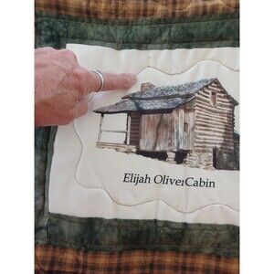 The Great Smoky Mountains landmark quilt or coverlet is a beautifully crafted multicolor quilt featuring local Tennessee cabins, homes and churches in a country style design. This patchwork quilt is perfect for decorating a bed, with its quilted texture adding a cozy and unique touch to the room. It also features a rod pocket on the backside for easy hanging as a tapestry in any room. While this appears to be handmade with unknown materials, this one-of-a-kind coverlet is a charming addition to any home.