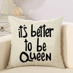 You get BOTH covers! Toss pillow covers for your chair or couch. They say "It's Great to be King" and "It's Better to be Queen" in black letters on a beige background. Invisible zipper opening. Bundle of 2. About 18" x 18" square. 2 sets are available. Refresh a pillow you already own, or buy a pillow form, sold separately. New!