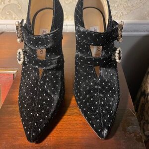 Gorgeous black velvet booties! Pearl detail. 100mm height. Size 38 EU or 7.5 US. Worn twice.