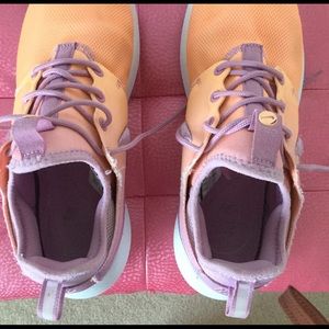 Worn only 5-6 times. Orange and purple. White sole. Lightweight sneaker.