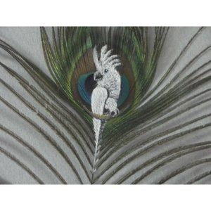 Great White Cockatoo Hand Painted Turkey Feather Framed Picture 16.5" X 13.5"