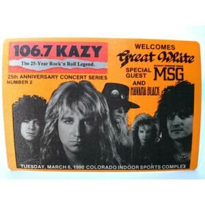 Great White MSG Backstage Concert Pass Original Hard Rock Music Havana Black '90