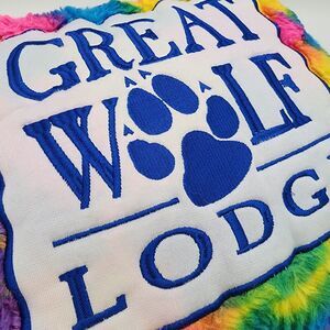 Great Wolf Lodge Plush Throw Pillow Rainbow Tie Dye Yellow Back Decorative 14x14