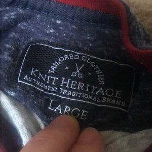 The color is navy and grey. THIS SHIRT IS SO SOFT AND COMFY! Hubby is sad it doesn’t fit anymore.