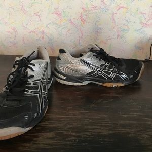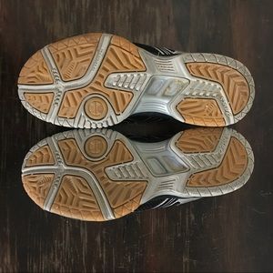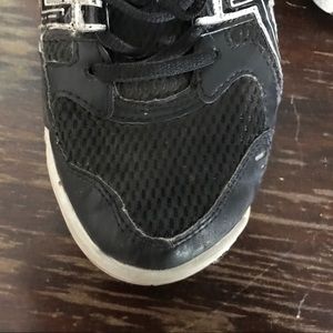 Black and gray exercise shoes. Super comfy with minor scuffing on the front. Great condition. Wore them for volleyball so the bottoms rarely ever touched concrete.