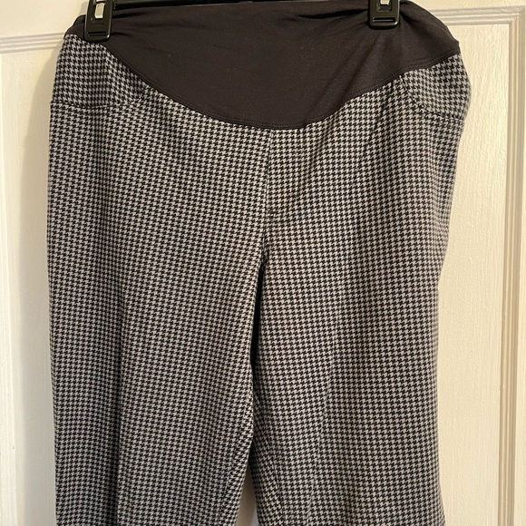 Great expectations maternity pants grey and black print size large 12-14 57 cotton 34 poly 9 spandex insert 91 nylon 9 spandex