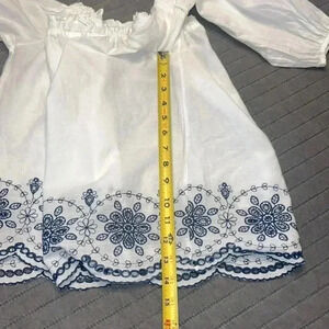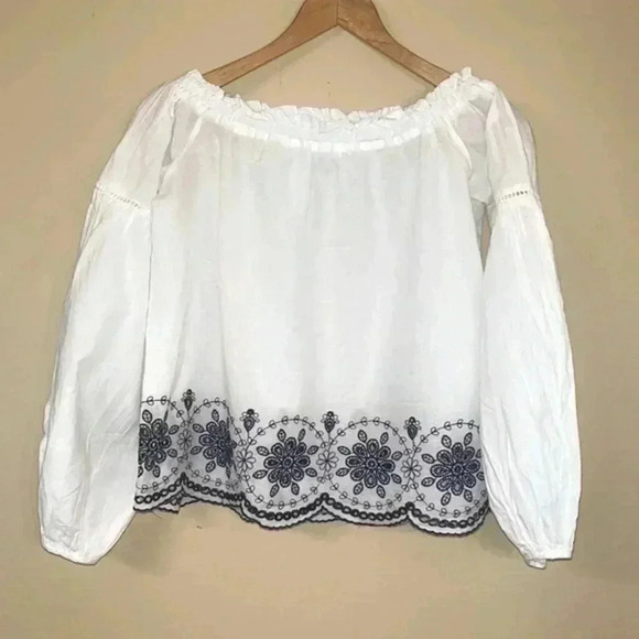 White off shoulder top 100% Cotton Cute embroidered bottom Elastic at cuffs No stains or holes. Great condition.