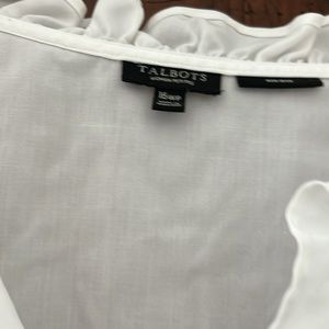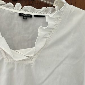 Beautiful popover with ruffled neckline and three-quarter sleeves. Can be both casual and dressy.