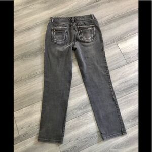 Great grey/ black jeans by Spanner in size 4. Has some interesting details like white stitching and zippers on the pockets. Inseam is 28” and rise is 9”. 96% cotton and 4% spandex. They are stretchy. Excellent used condition.