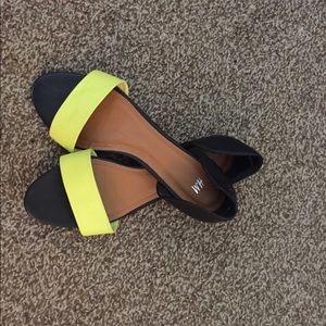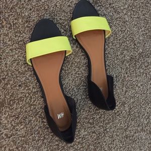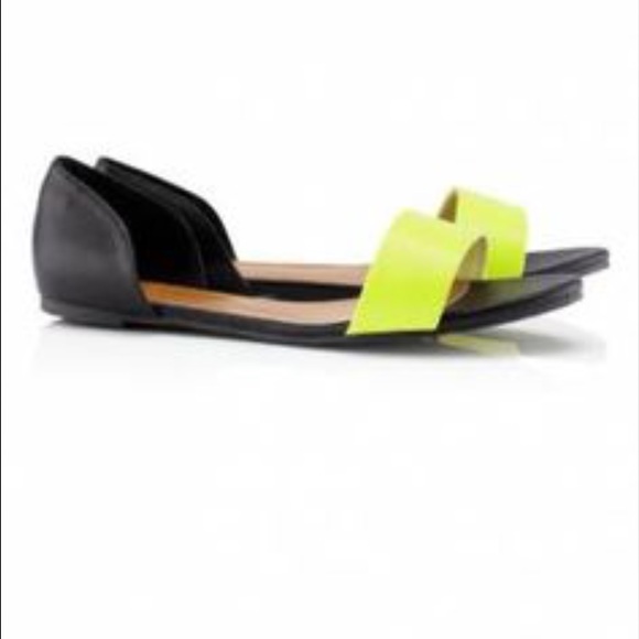 Open toe black and neon yellow flat! It's a size 41, but would fit a size 10.