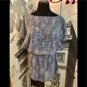 Cute somewhat sheer tunic or swimsuit cover by Miken in size medium. 100% polyester. Has an elastic waist. Excellent condition.
