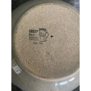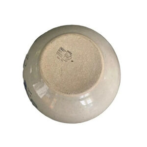 Great Bay Pottery N Hampton Glazed Clay Round Bowl Beige Blue 8" Diameter, 5" High