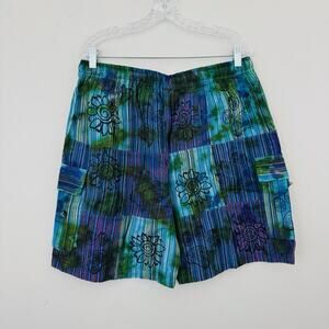 Greater Good Blue Tie Dye Patchwork Paw Print Shorts Women’s Size XXL