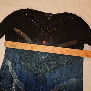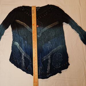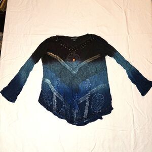 Greater Good Blue and Brown Embellished Long Sleeve Blouse Size Large