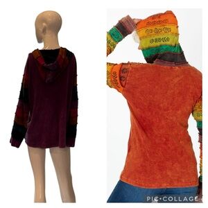 This colorful purple cotton jacket will make a believer out of you with its sunny design & patchwork details. In lightweight cotton with a zippered front, kangaroo pocket and hood; this hippie hoodie will be easy to pair with jeans or shorts!