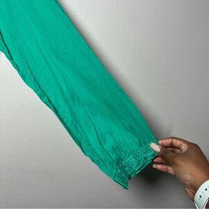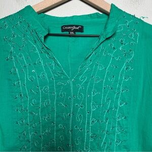 Greater Good Women Top XXL Kelly Green Embroidered Sequin Popover Boho Cotton