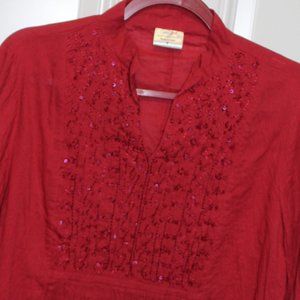 Greater Good Women's Size Medium Red Cotton Blouse Made in India