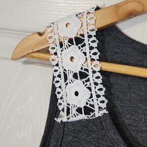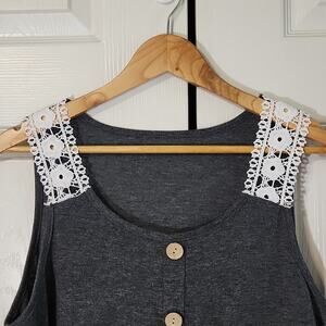Greathe Womens Gray Tank Top Size Med Lace Embroidered Straps Wood Buttons Boho