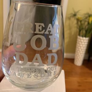 “Great job dad – I turned out awesome” stemless wine glass NWT. Great gift for dad at Christmas, on his birthday or on Father’s Day. Or, just because gift. Smoke free and pet free home