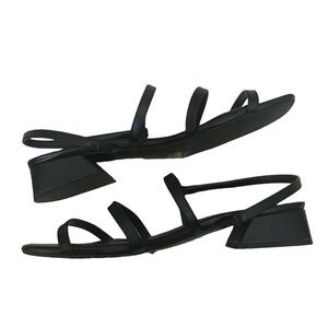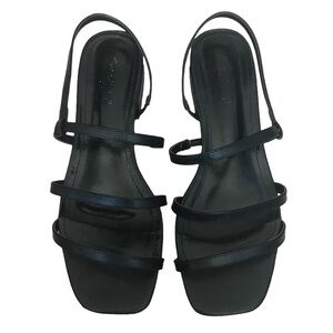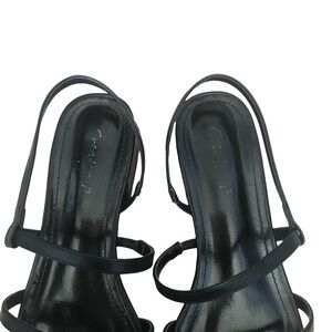 Black, strappy, heeled sandals. Have a block heel, square toe and elastic ankle strap. Preowned with a little wear but overall in good shape. These are a EU 39 / US 8 according to Greatonu size chart. Material unknown