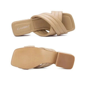 Fashion Design: Square open-toe design, stylish quilted cross band upper and steady block heels make these mules heels for women fashion& comfortable.