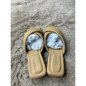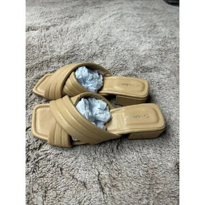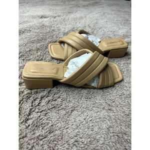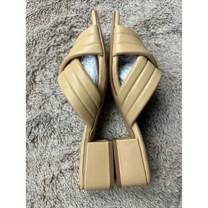 Greatonu Women's Chunky Heeled Sandals Square Open Toe Mules Heels Cross Band Summer Dressy Sandals