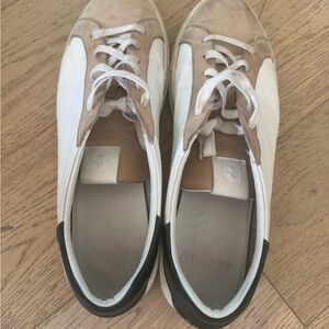 Step out in style with these men's casual sneakers. Featuring a sleek white and tan design, these shoes offer both comfort and versatility. Perfect for everyday wear.